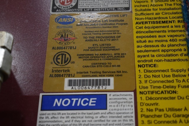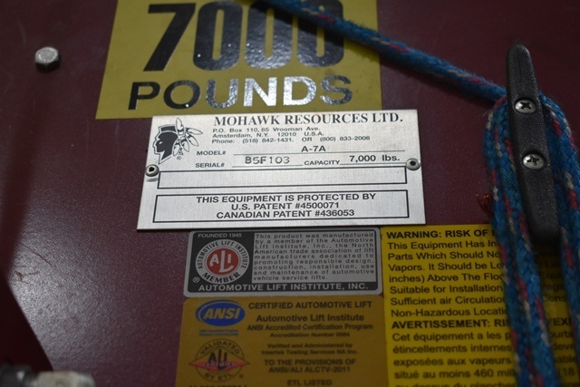 Mohawk 7,000lb. Capacity Lift Model#A7A Single Phase 208-230 Serial# B5F103