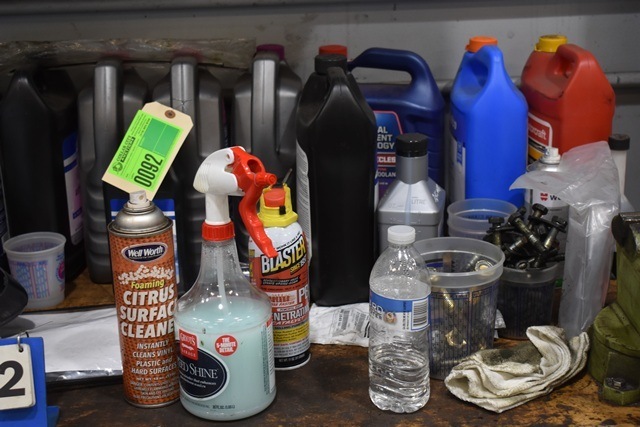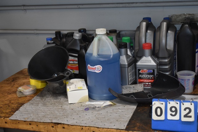 Rest of Top of Bench of Fluids and Assorted Bolts and Parts