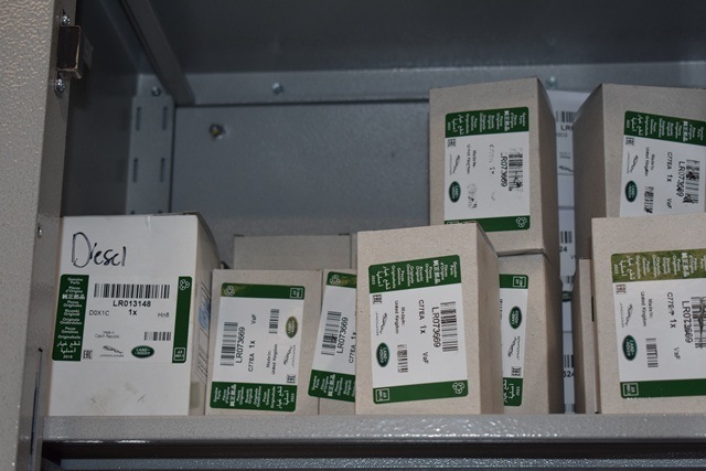 Cabinet Contents Consisting of Volvo and Jaguar and Land Rover Oil Filters