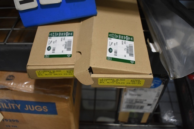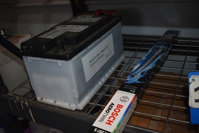 Shelf Lot with Wiper Blades, Battery, Tarp, etc.