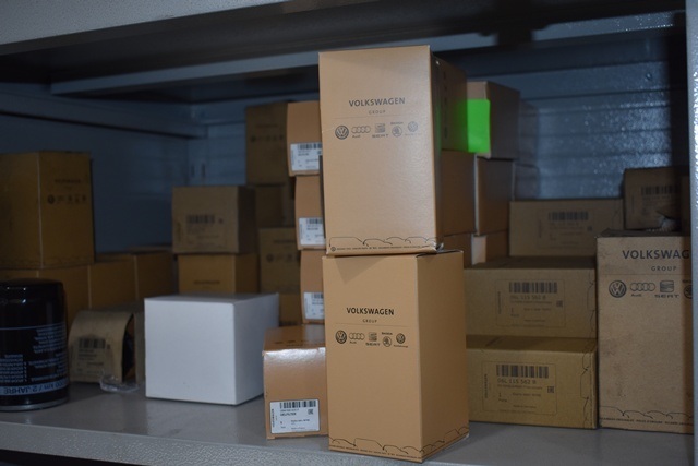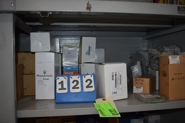 Shelf Lot of Assorted Oil Filters Including Maserati, Volkswagen, etc.