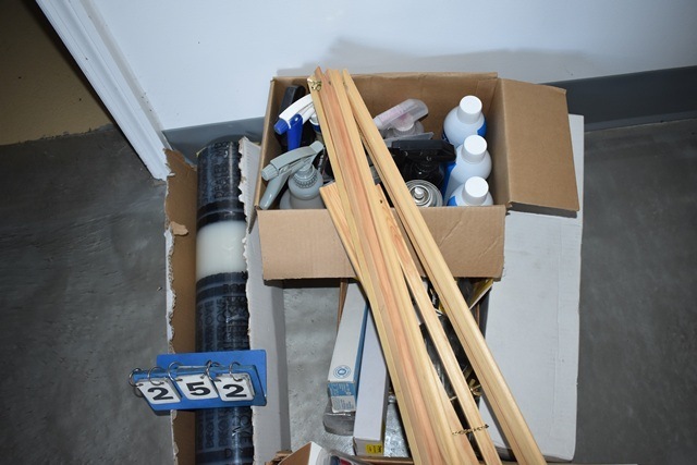 Lot of Cleaning Supplies, Easel, Thermostat, etc.
