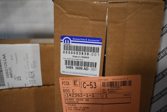 Shelf Lot of Alfa Romeo and Mopar Parts, See Images for Part Numbers