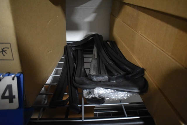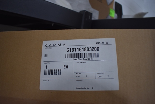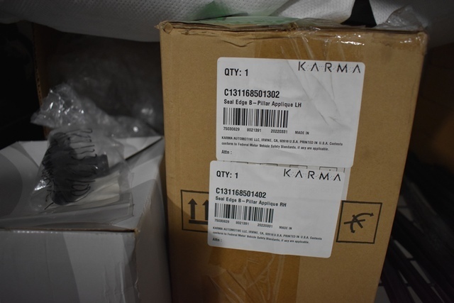 Shelf Lot of Karma Parts, Including Charging Cables, Headlamp, Plastic Trim Panel, Rubber Gaskets, Etc.