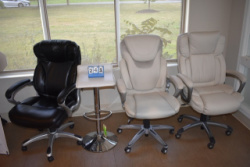 3 Office Chairs. 2 are White, 1 is Black and a White Barstool