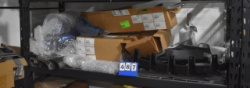 Shelf Lot of Assorted Parts Including Karma Generator Inverter, Power Cables, Window Parts, Etc.