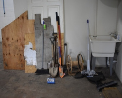 Lot of Shovels, Brooms, Hose Reels, Dustpan, Mops