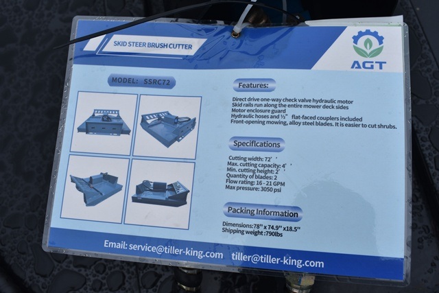 working width 77 in, Direct Drive Hydraulic Motor, Quick Attach, 790lbs. NOTE: GEAR BOX NEEDS OIL BEFORE USING