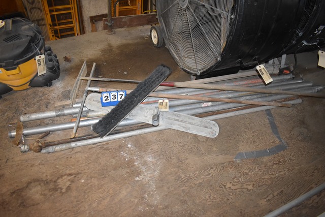 Large Lot of Bull Float Handles and Bull Float Rake, etc.