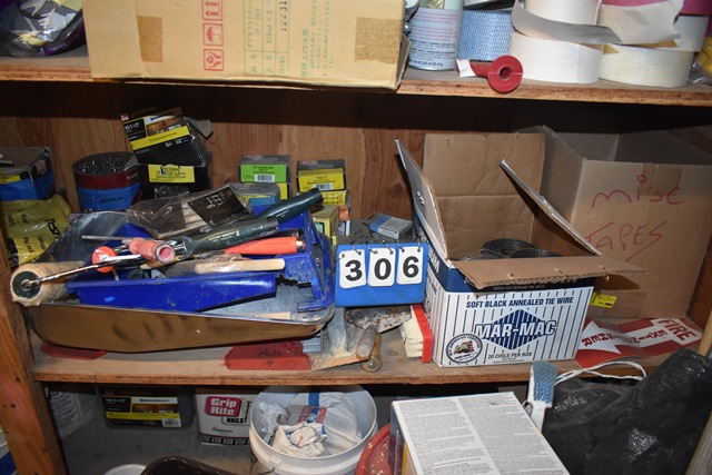 Shelf Lot Including Tie Wire, Painting Accessories and Fasteners
