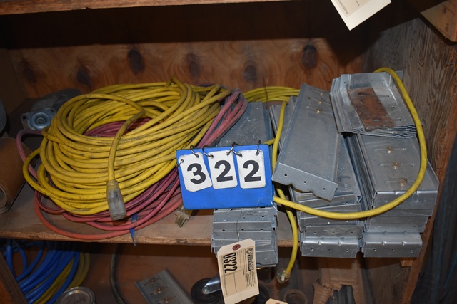Shelf Lot of Lead Cords, Face Shields, Muffler Clamps, Drain Clean Bladder, etc.