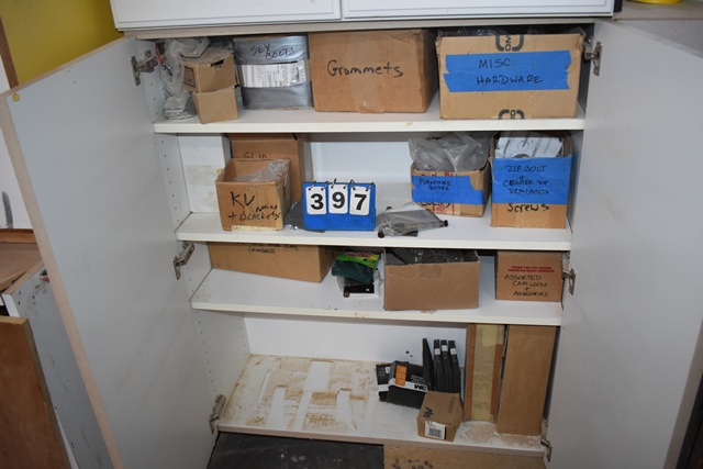 Cabinet 42X45 with Contents of Zip bolts and Countertop Draw Bolts, Camlocks, Brackets, etc.