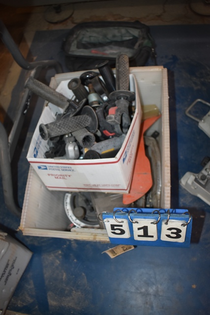 Box Lot of Grinder Handles, Saw Parts, etc.