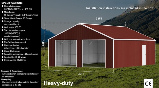 Size: 25FT(W)x33FT(L)× 14FT (H)