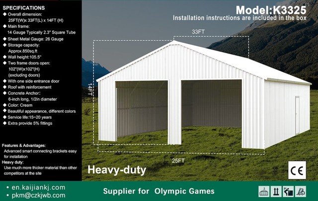 Size: 25FT(W) x 33FT(L) × 14FT (H)