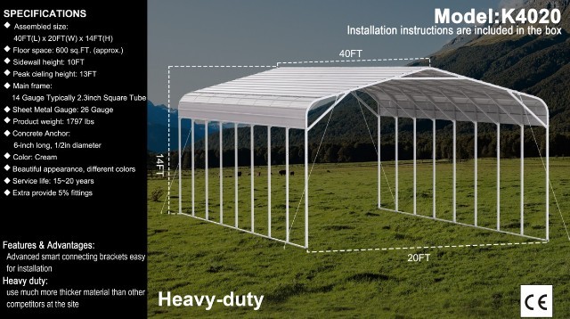 40ft(L) × 20ft(W) x 14ft(H)
