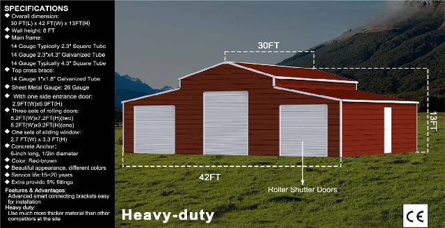 30 ft(L) X 42 ft(W) X 13ft(H)