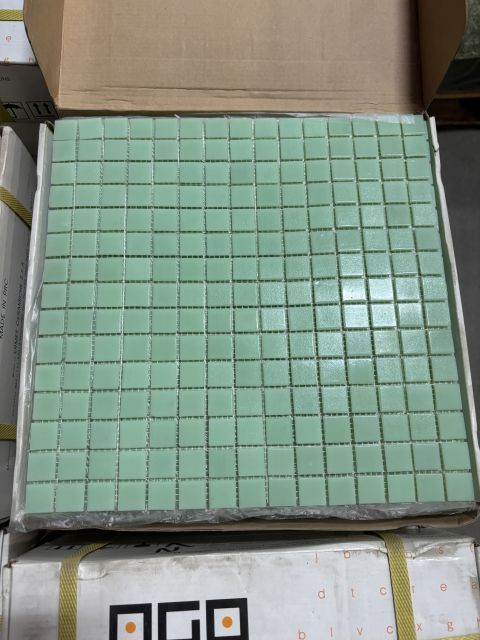 Tile, Logo 13 x 13-inch glass mosaic "Mint Green" (JC-31) - 20 sheets per box, 23.03 sq.ft. per box; 3 boxes / 69.09 sq.ft. in total