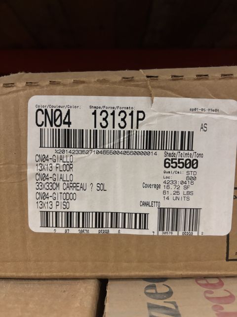 Tile, Dal-Tile 13 x 13-inch "Canaletto Giallo" - 14 sheets per box, 16.72 sq.ft. per box; 5 boxes plus 10 sheets / 95.34 sq.ft. in total