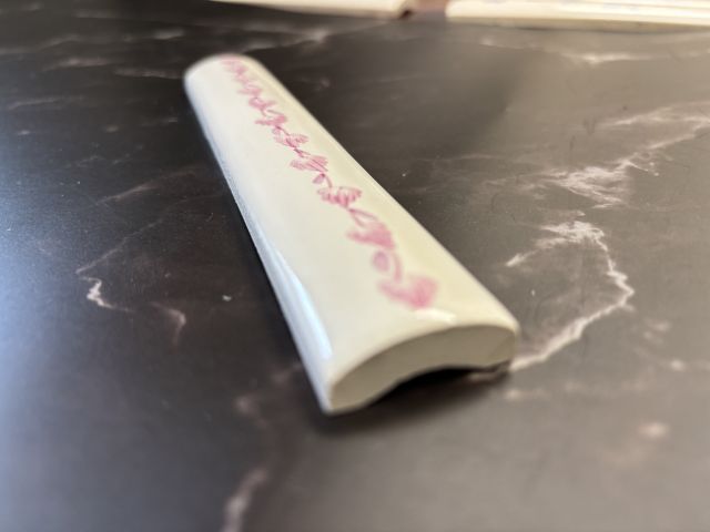 Tile, Huntington trim 1.25 x 6-inch "Rose Colored Ivy"; 40 pieces / 20 linear feet per carton; 2 cartons / 40 linear feet in total