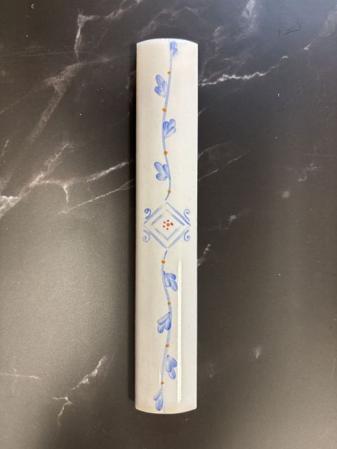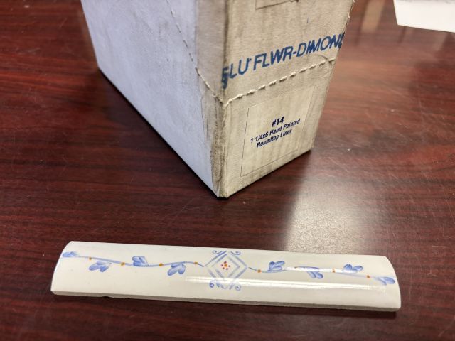Tile, Huntington trim 1.25 x 6-inch "Blue Flowers"; 40 pieces / 20 linear feet per carton; 2 cartons / 40 linear feet in total