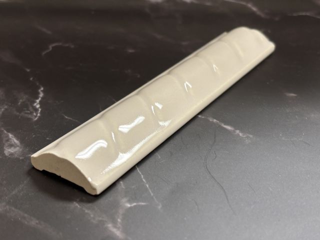 Tile, Huntington Rope Liner trim 1.25 x 6-inch "Bone Gloss" (G230S); 10 pieces / 5 linear feet per carton; 4 cartons / 20 linear feet in total