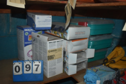 Shelf Lot Including Jackhammer Bit, Lead Cords, Red Caution Tape, etc.