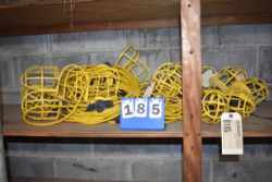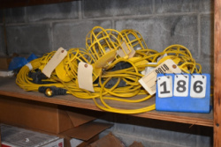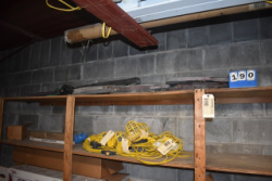 Shelving Unit Contents Including Glass Block, Steel Cable, Cable TV Wire, etc.