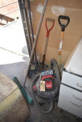 Lot Including Shop Vac Vacuum Cleaner and Assorted Shovels and Dustpans