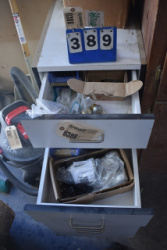Cabinet with Contents Including Screws, Router Bits, Laminate Trimmer, etc.