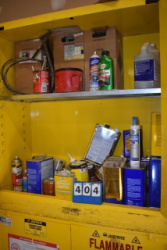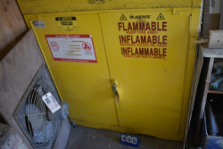 Flammable Cabinet Approx. 48in. Tall with Contents Including Mineral Spirits, Brush Cleaner, Rubbing Compound