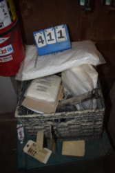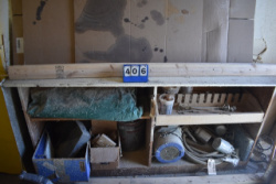 Shelving Contents Consisting of Painting Accessories and Tarp