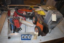 Large Lot Including Rollaround Material Handlers, Heater, Brushes, Rope, Bracketry, etc.
