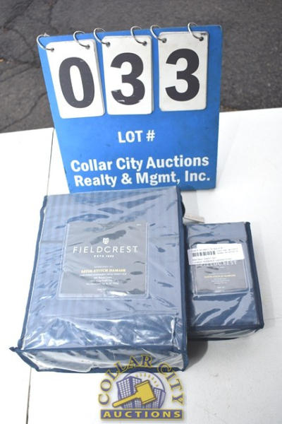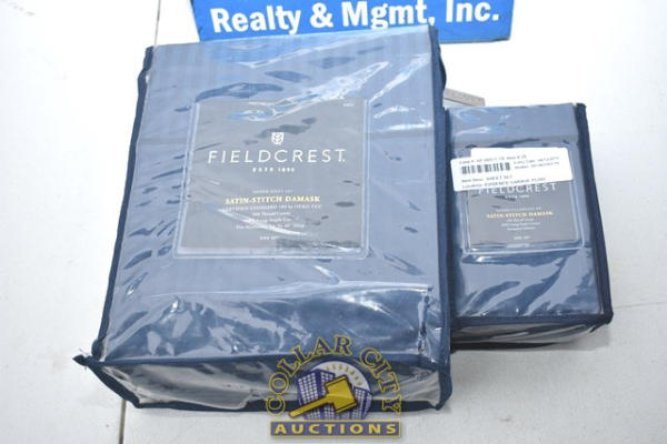 LOT OF FIELDCREST SATIN STITCHED DAMASK 500 THREAD COUNT, 100% LONG STABLE COTTON, FITS MATTRESSES UP TO 20" DEEP, INCLUDES MATCHING SATIN PILLOWCASE SET