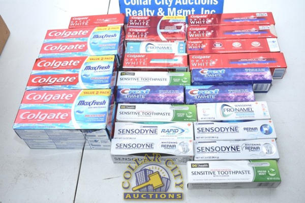 LOT OF ASSORTED COLGATE SENSODYNE AND DG HEALTH TOOTHPASTE