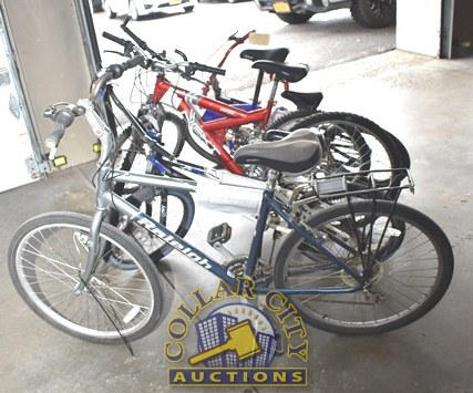 LOT OF 5 BICYCLES INCLUDING RAZOR, NEXT, MOUNT STORM, RALEIGH, ETC.