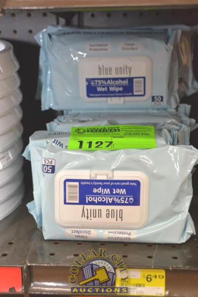 LOT OF 10 BLUE UNITY 75% ALCOHOL WET WIPES, 50 PIECES TO A PACK
