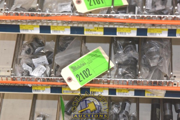 SHELF LOT OF BLACK PIPE FITTINGS, MOST APPEAR TO BE 3/4"