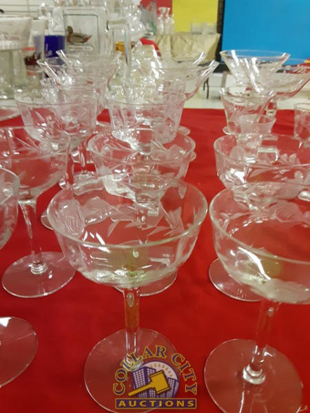 22 Pieces of Beautiful Etched glassware