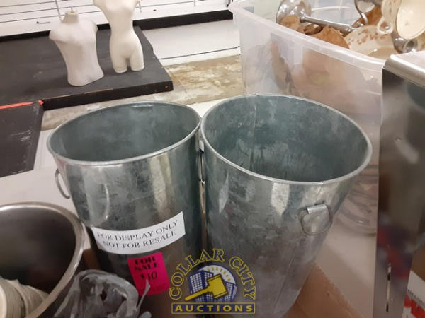 Weighted display buckets, paper towel dispenser, bag of spoons