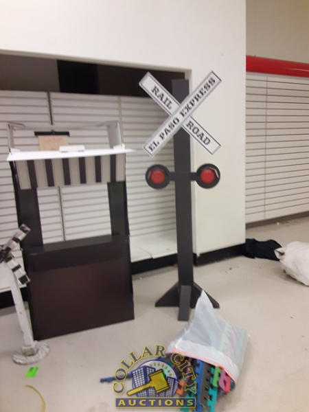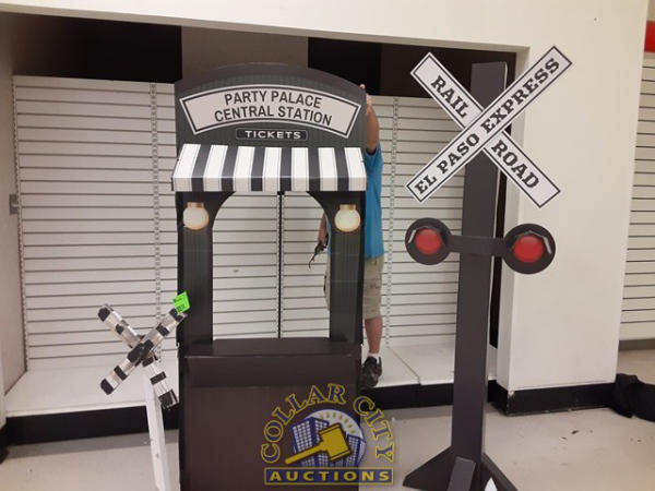 3 Cardboard train ticket booth w/ Railroad crossing