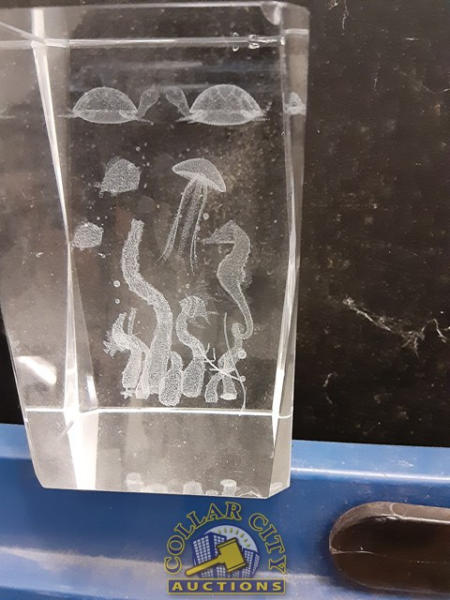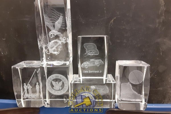 25+/- Assorted Scratch and dent crystals w/ etched designs in center.