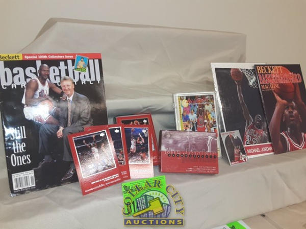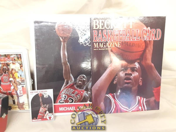 Michael Jordon Lot including card set, book, magazine and picture