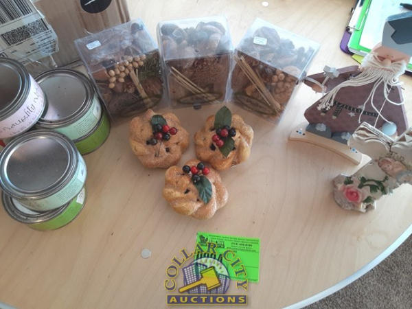 Lot of 15 scented boxed arrangements, tins of notes, scented apple pics & Misc. decorations.