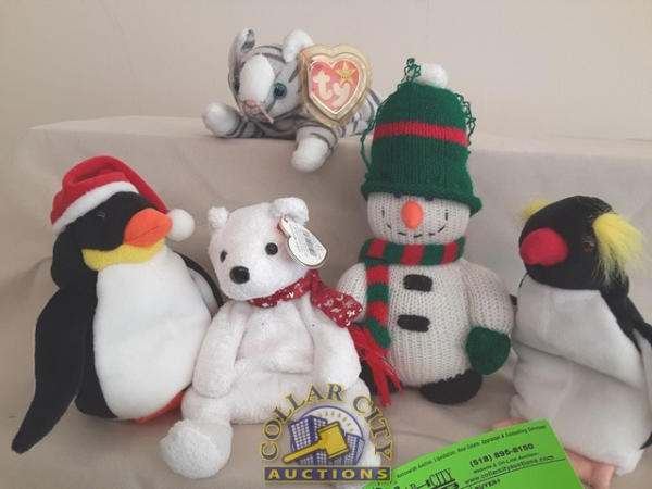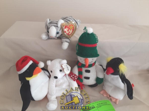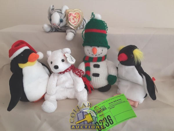 Cat, soft bear, 2 penguins and 1 snow man that is NOT a TY