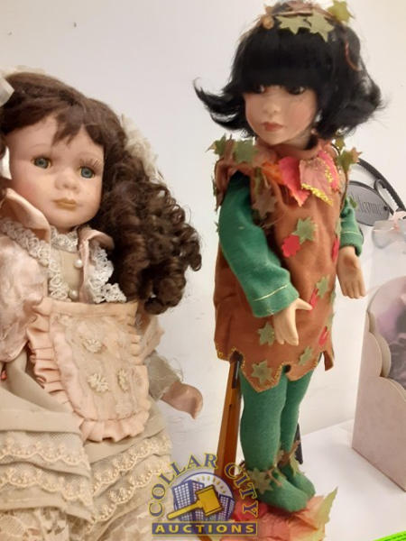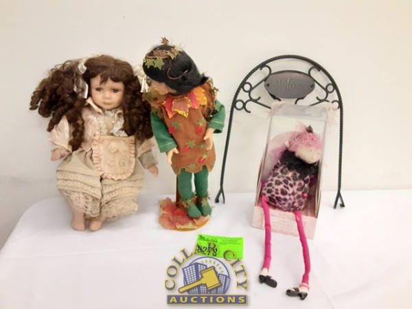 4 Porcelain Dolls; 1 Hallmark Doll, welcome gate and 2 porcelain