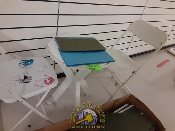 old small table and 2 chairs with 50 XL file cabinets sleeves