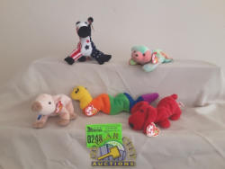 Cat, soft bear, 2 penguins and 1 snow man that is NOT a TY