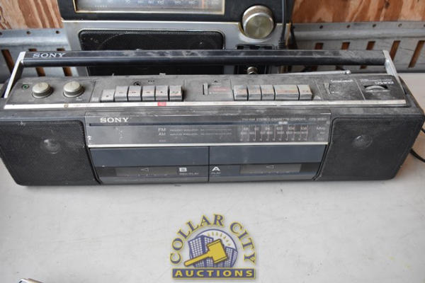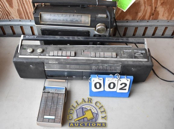 Includes Sears 9 Transistor Radio, Sony FM/AM Stereo Cassette-Corder CFS-W301, and General Electric Superadio II (We do not guarantee the working condition or completeness of any of these items.)