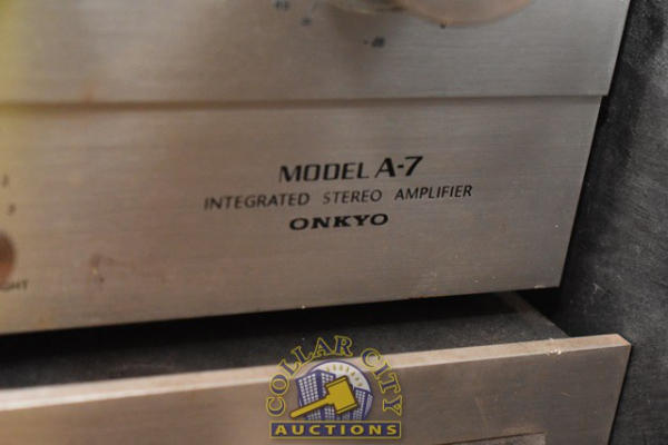 Lot includes an Onkyo Model A-7 Integrated Stereo Amplifier and a Model T-4 Servo Locked Stereo Tuner (We do not guarantee the working condition or completeness of any of these items.)